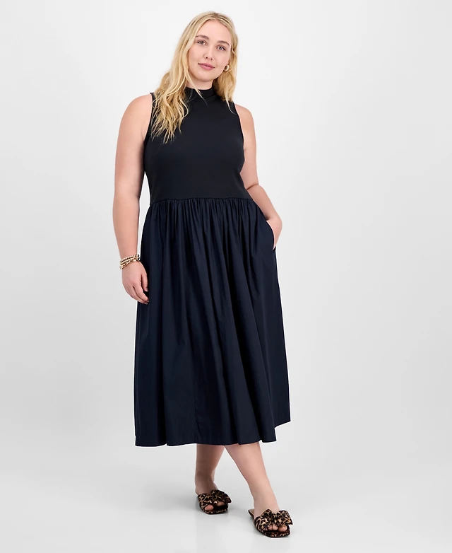 On 34th Trendy Plus Solid Mock-Neck Sleeveless Midi Dress, Macy's Exclusive