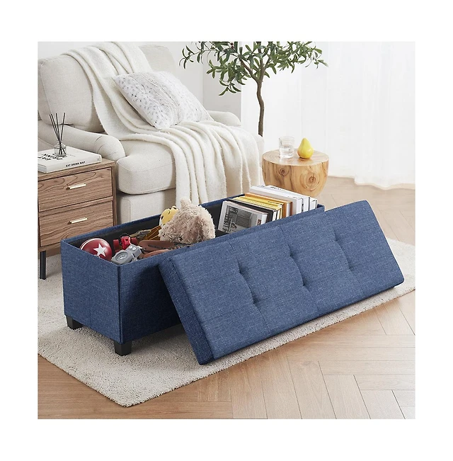 Ornavo Home Foldable Tufted 43 Inch Long Linen Bench Storage Ottoman with Legs