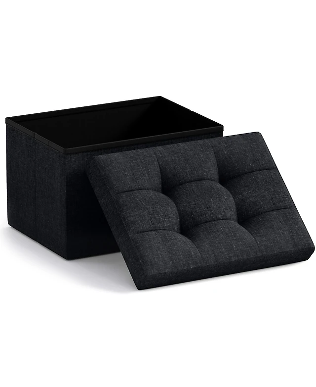 Ornavo Home Foldable Tufted 15 Inch Square Linen Storage Ottoman with Legs