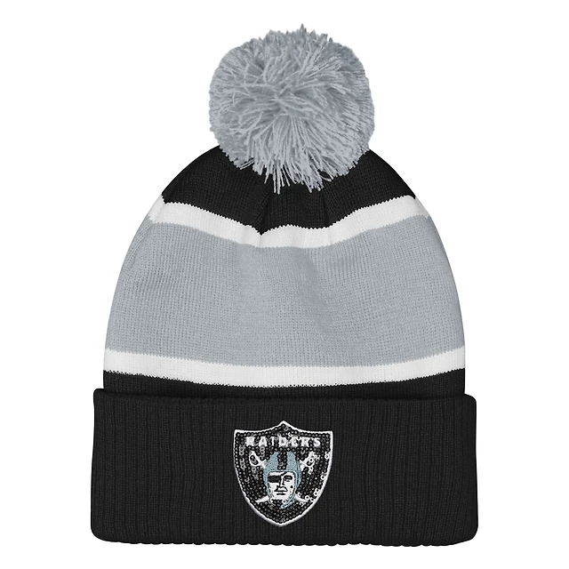 Girls Outerstuff Black Las Vegas Raiders Let's Play Cuffed Knit Hat with Pom