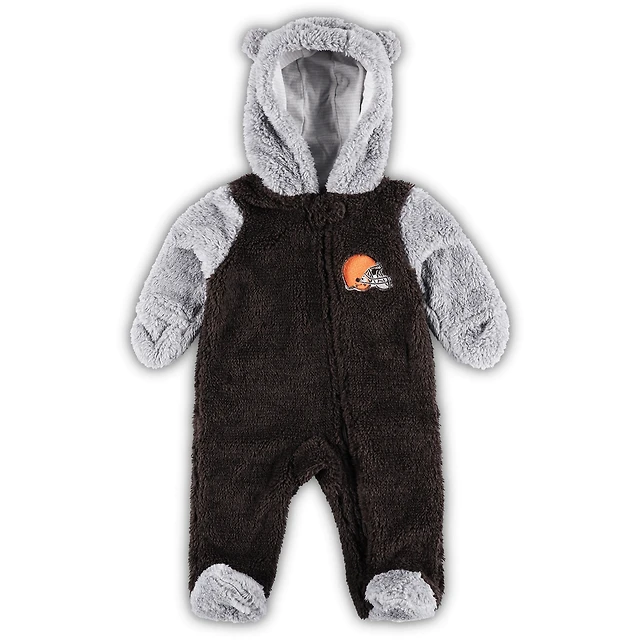 Newborn & Infant Brown/Gray Cleveland Browns Game Nap Teddy Fleece Bunting Full-Zip Sleeper