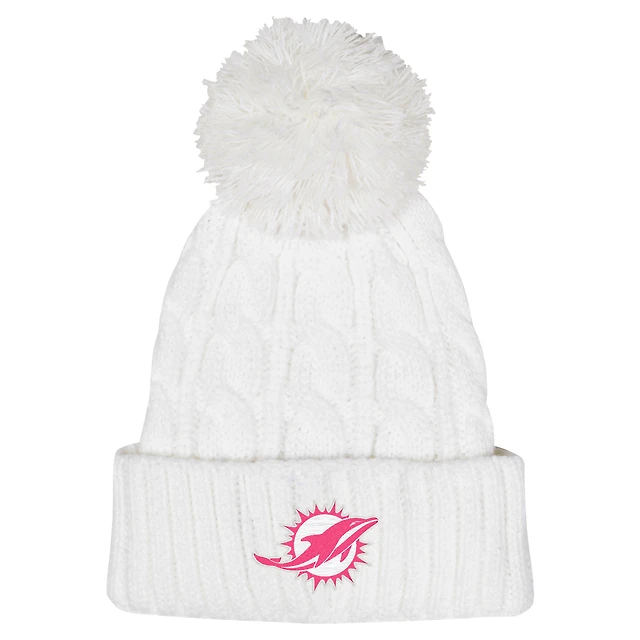 Girls Youth White Miami Dolphins Cable Cuffed Knit Hat with Pom