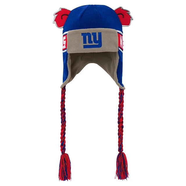 Youth Royal New York Giants Wordmark Ears Trooper Knit Hat