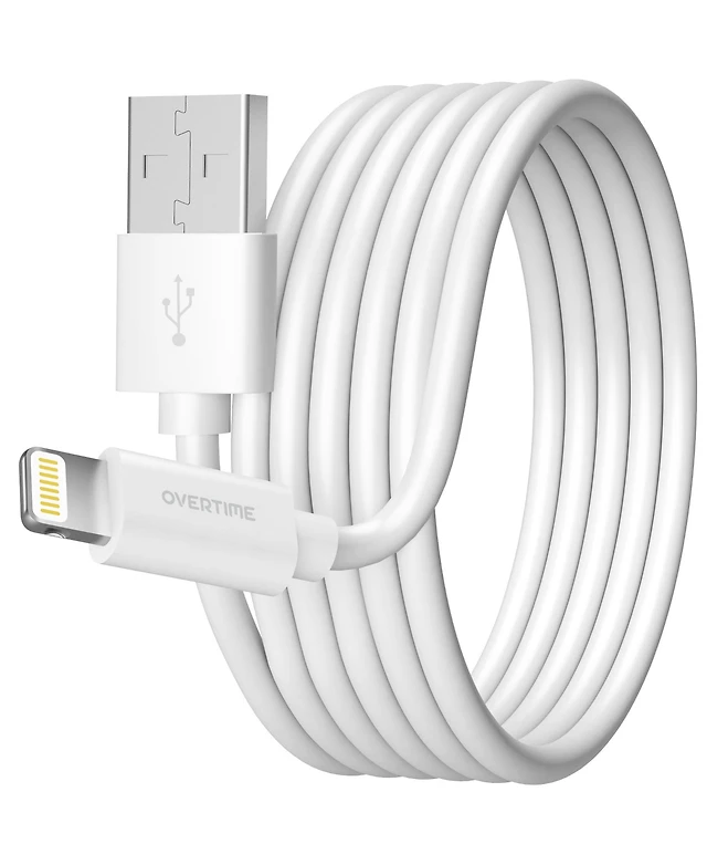 Overtime Apple MFi Certified iPhone 11/Xr/Se/10/8 10ft Charging Cable | Usb to Lightning Cable for iPhone - White