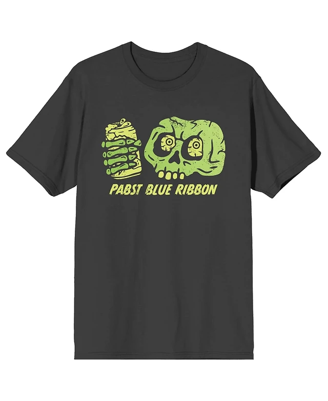 Pabst Blue Ribbon Men's Halloween Skull With Beer Crew Neck Short Sleeve Charcoal T-shirt-3XL