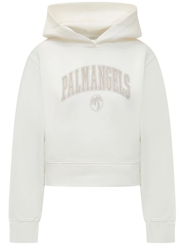 PALM ANGELS - White Crystal Logo Hoodie