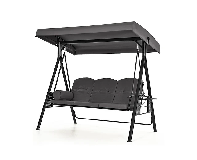 Pamapic 3-Person Gray Metal Patio Swing with Cushion