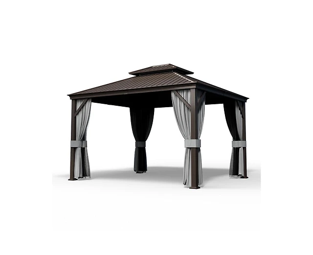 Pamapic 12 ft. x 14 ft. Metal Hardtop Gazebo with Curtains