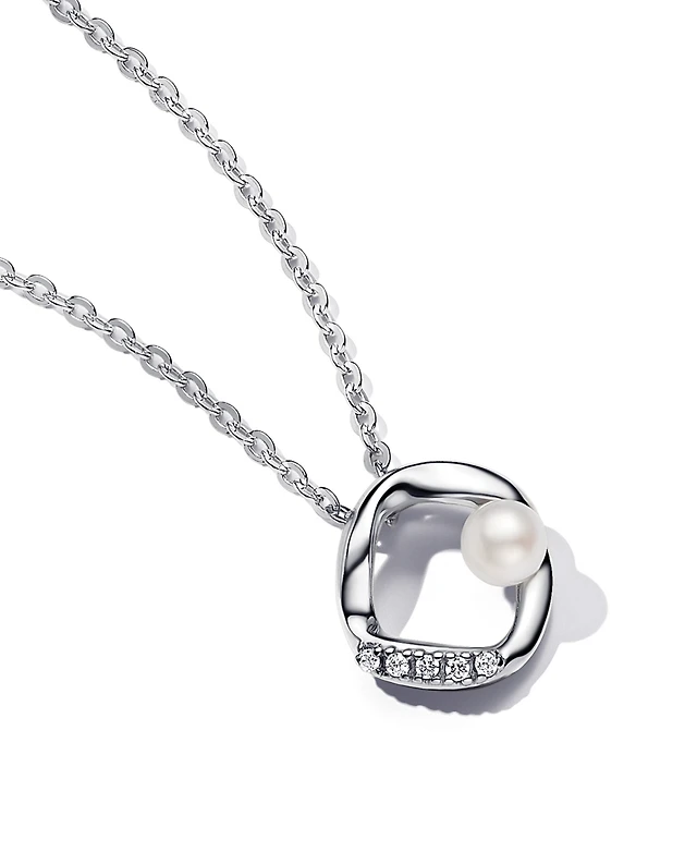 Pandora Shaped Pave Circle Treated Freshwater Cultured Pearl Collier 17.7 inch Necklace