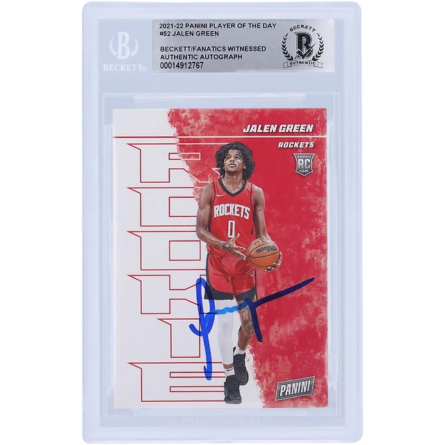 Jalen Green Houston Rockets Autographed 2021-22 Panini Player of the Day #52 Beckett Fanatics Witnessed Authenticated Rookie Card