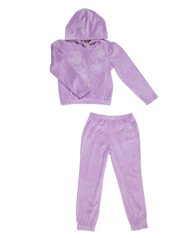 Paris Hilton Toddler Girls Ribbed Star Hoodie and Jogger Pants 2 Piece Lounge Set