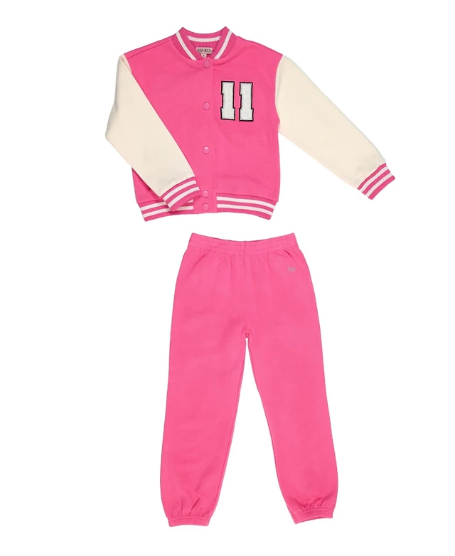 Paris Hilton Little Girls Sporty Paris Varsity Jacket and Jogger Pants 2 Piece Lounge Set