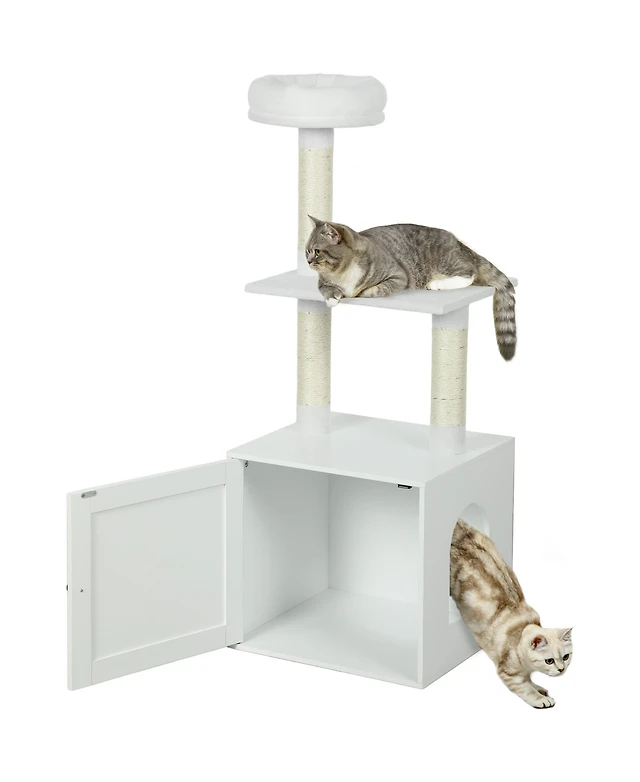 PawHut Cat Litter Box Enclosure with Scratching Board, 31.5" x 19" x 20"