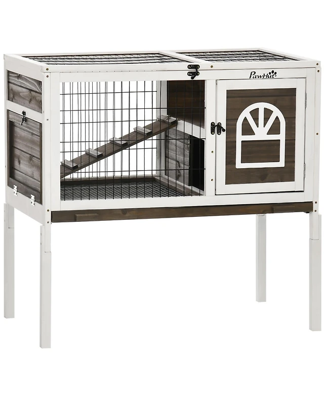 PawHut Wooden Rabbit Hutch with Wheels for Small Animals, Guinea Pig,
