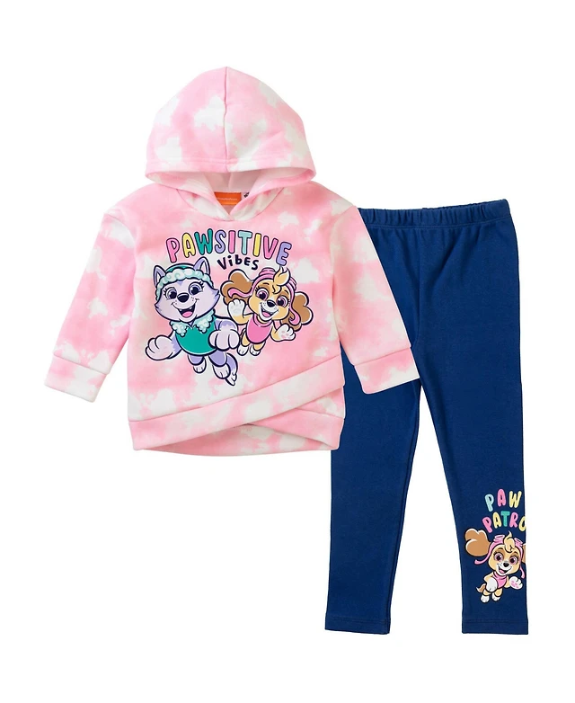 Paw Patrol Little Girls Pullover Crossover Fleece Hoodie and Leggings Outfit Set