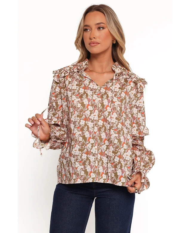 Petal and Pup Women's Selmah Long Sleeve Top - Cream Olive Orange