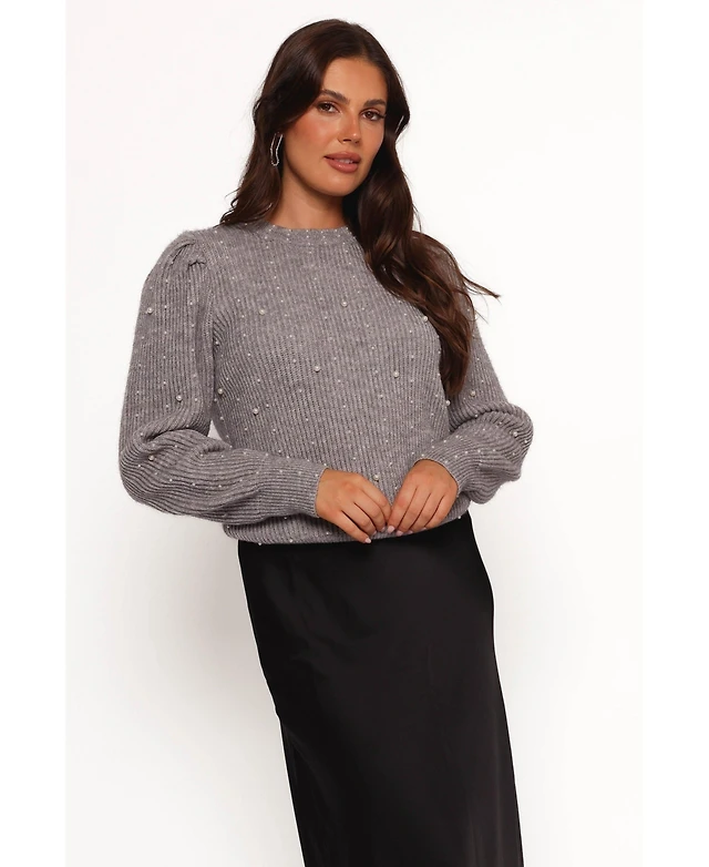Petal and Pup Women's Makena Pearl Detail Knit Sweater - Heather Grey