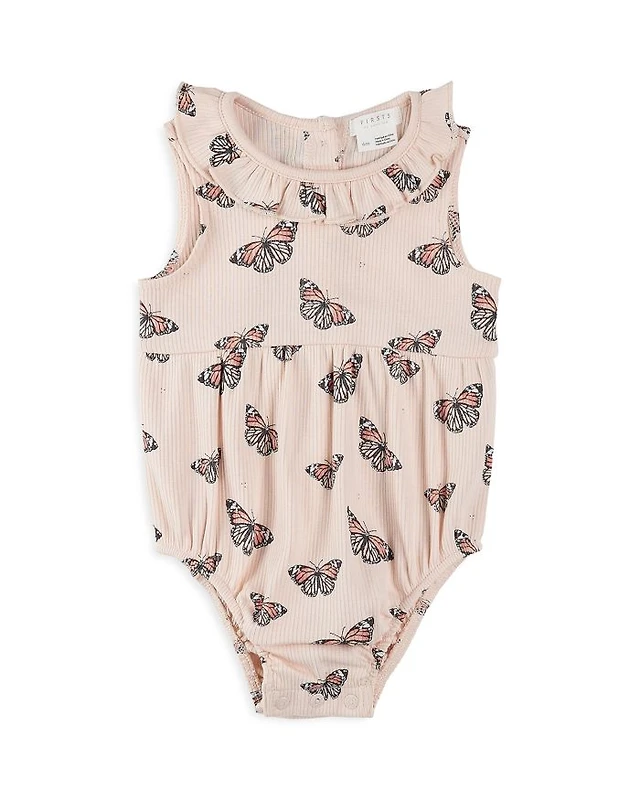Girls' Monarch Butterfly Print Ribbed Bubble Romper - Baby