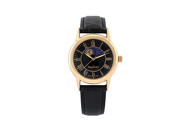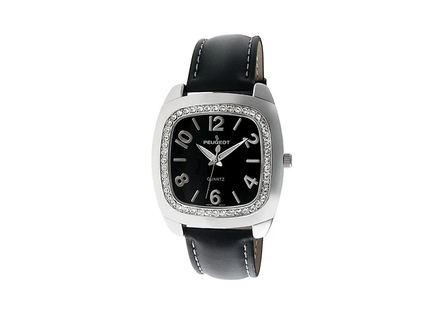 Peugeot Women's Black Watch 40mm Bold Crystal Bezel Leather Strap