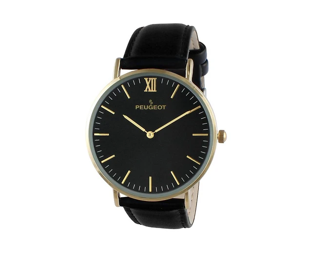 Peugeot Men's 40mm Wafer Slim Round Gold-Plated Case Watch-Black
