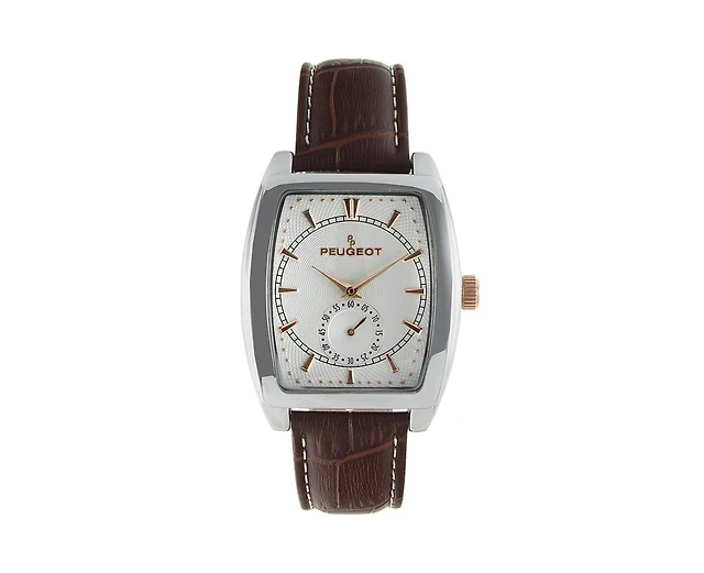 Peugeot Men's 40mm Rose Gold Vintage Like Remote Sweep Leather Strap Watch
