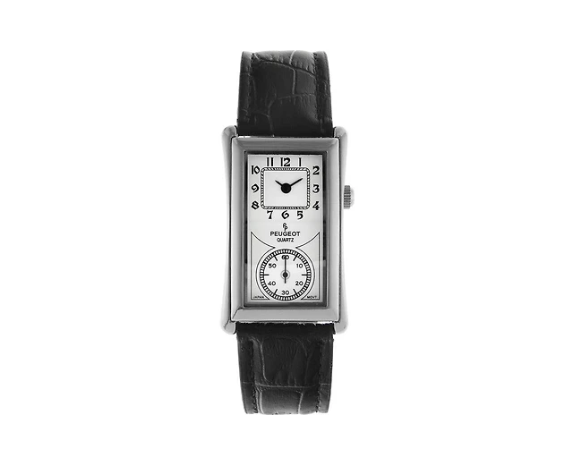 Peugeot Men's 30X40mm Silver Tank Shape Watch with Black Dial and Black Leather Strap
