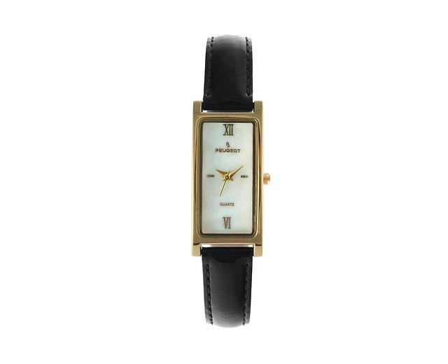 Peugeot Women's Tank Watch Roman Dial Black Leather Strap
