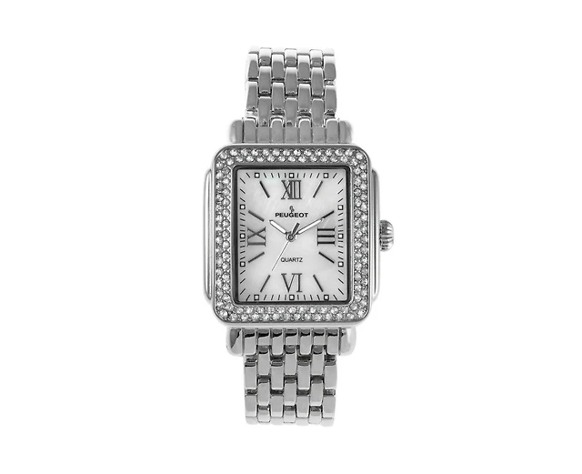 Peugeot Womens Crystal Accented Square Silver-Tone Acrylic Link Watch