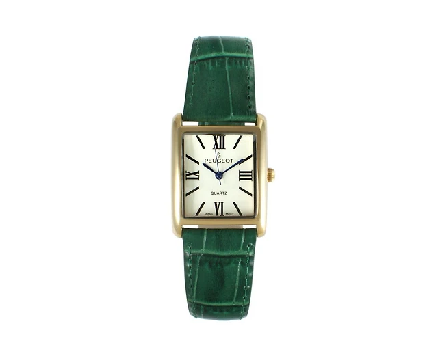 Peugeot Women's Tank Watch Roman Dial Green Leather Strap
