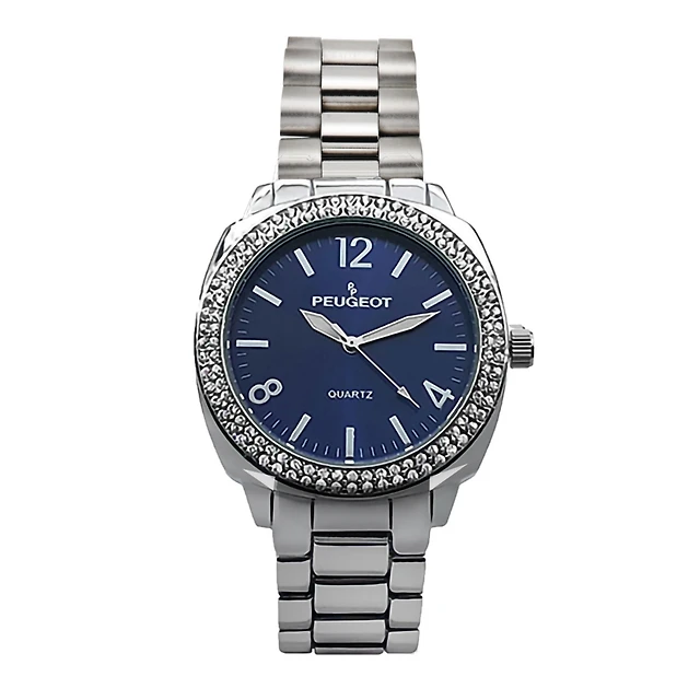 Peugeot Women's 40mm Blue Face Boyfriend Bracelet Watch with Crystal Bezel