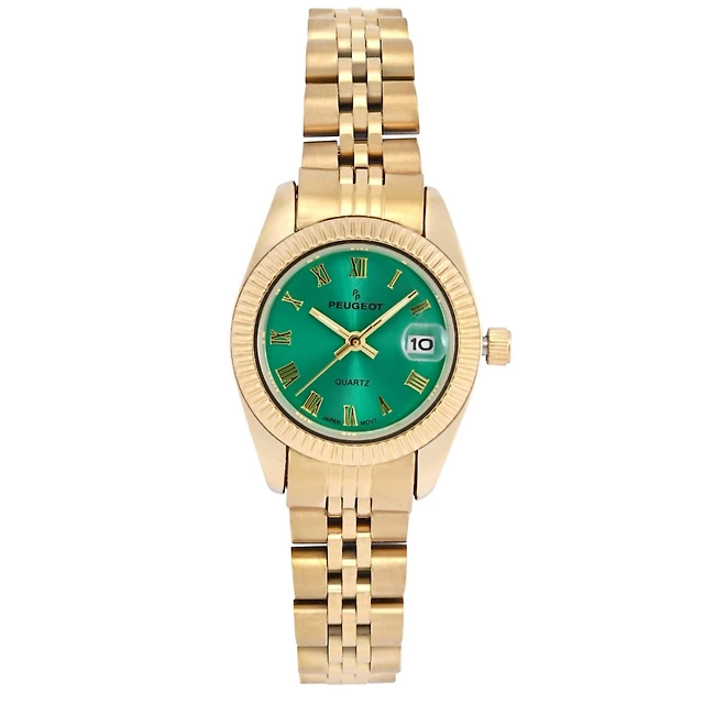 Peugeot Women's Gold-Tone 25mm Fluted Bezel Steel Bracelet Watch with Green Dial
