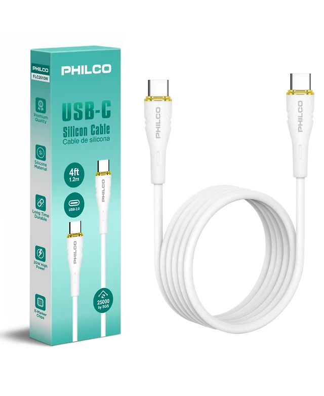 Philco C To Type Cable, Silicone, 4Ft Length, 20W Fast Charging, High-Speed Data Transfer, Compatible with Usb-c Devices, Tangle Free.