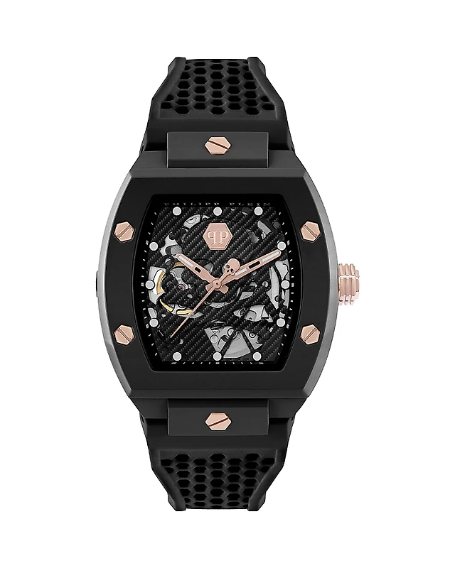 Philipp Plein Men's Automatic The Keleton Black Silicone Strap Watch 44mm