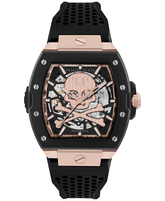 Philipp Plein Men's Automatic The Skeleton 2.0 Black Silicone Strap Watch 44mm