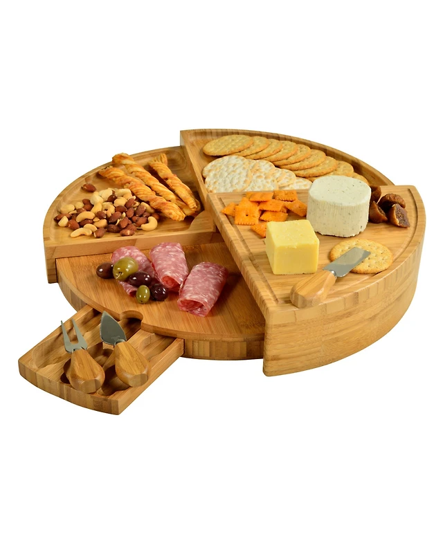 Picnic at Ascot Florence Multilevel Transforming Bamboo Cheese Board with Tools