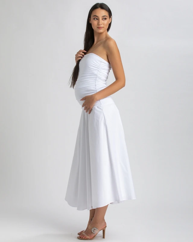 Pietro Brunelli Maternity Strapless Side Ruching Poplin and Jersey Coco Dress