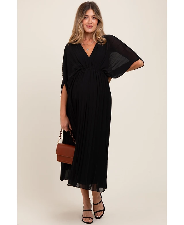 Pinkblush Maternity Blue Pleated V Neck Maxi Dress