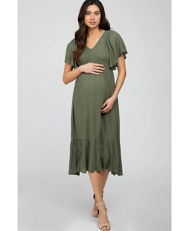 Pinkblush Olive Smocked Ruffle Maternity Dress