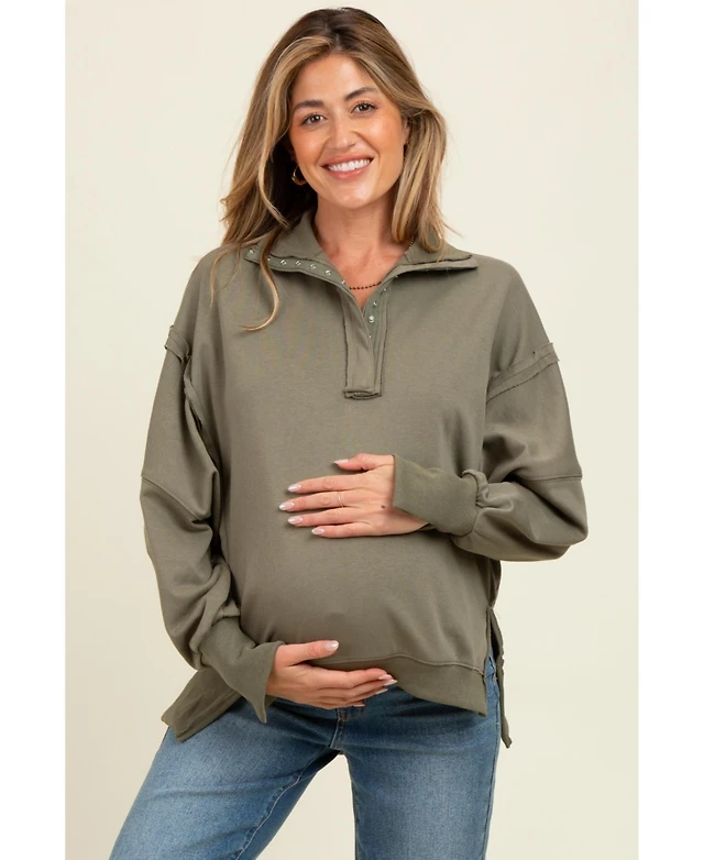 Pinkblush Olive Snap Button Pullover Henley Maternity Sweatshirt