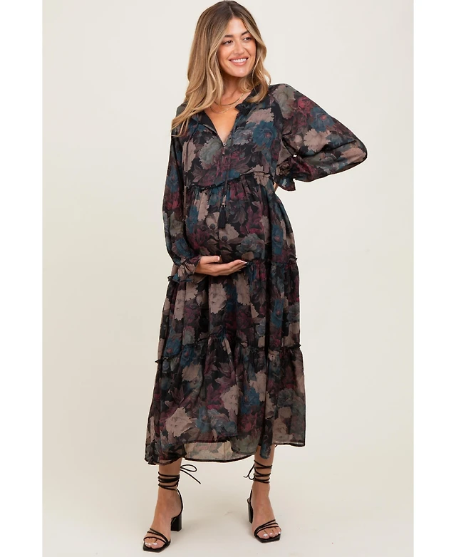 Pinkblush Maternity Floral Chiffon Ruffle Tiered Midi Dress