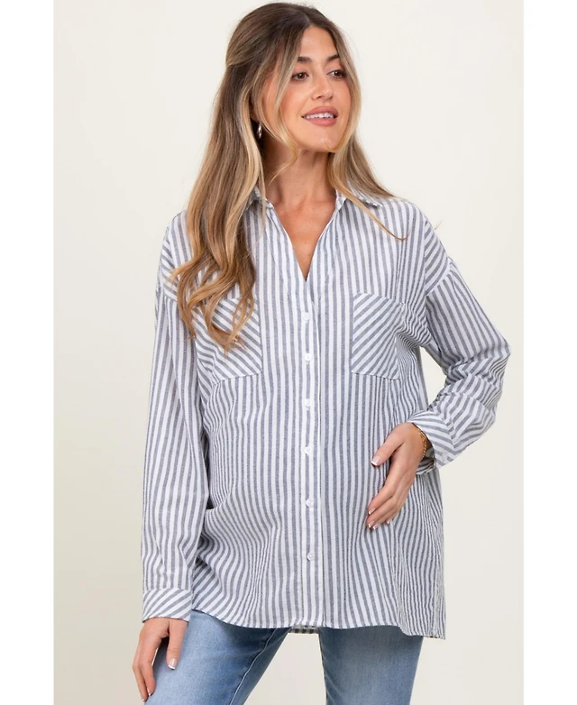 Pinkblush Maternity Navy Striped Double Pocket Button Down Top