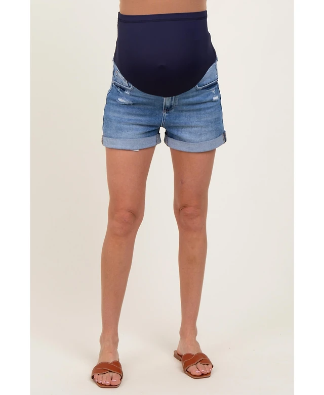 Pinkblush Maternity Navy Distressed Rolled Cuff Jean Shorts