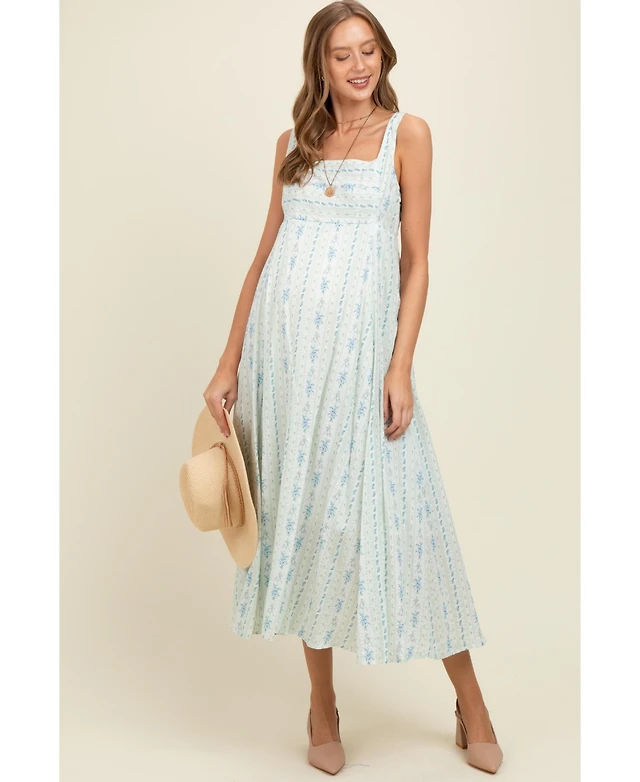 Pinkblush Maternity Teal Floral Pleated Chiffon Midi Dress