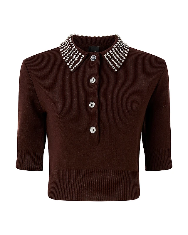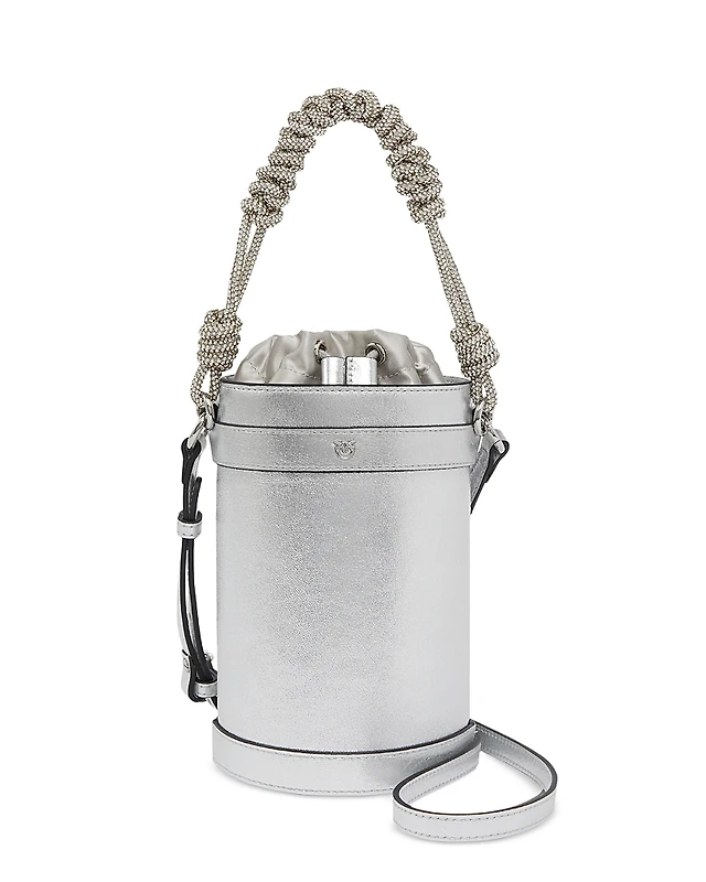 Pinko Mini Crystal Studded Leather Bucket Bag