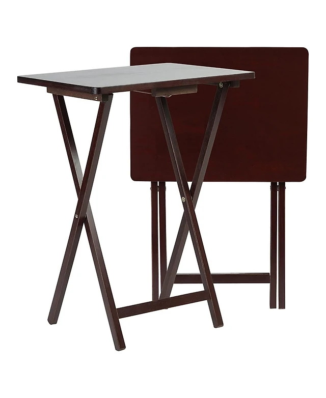 Pj Wood Folding Tv Snack Tray Folding Table Desk Stand, Espresso Brown, Set of 2