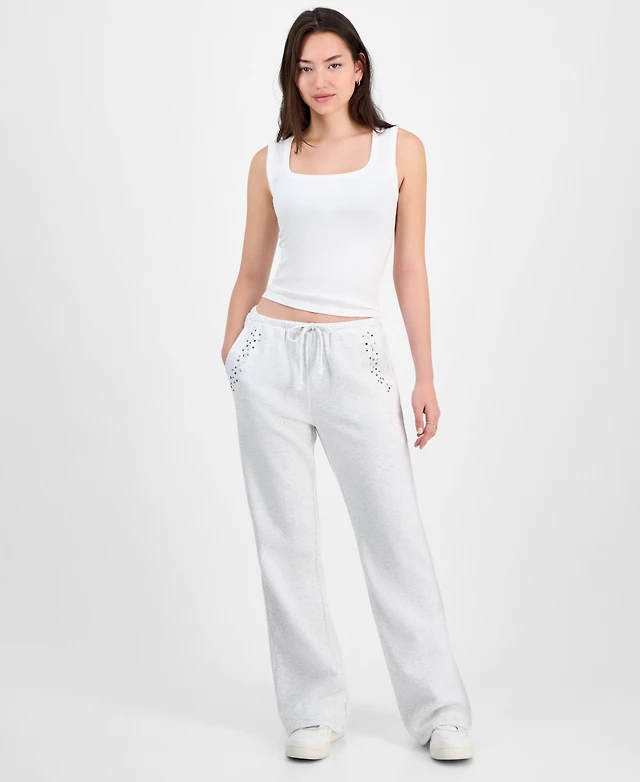 Planet Heart Juniors' Wide-Leg Fleece Sweatpants