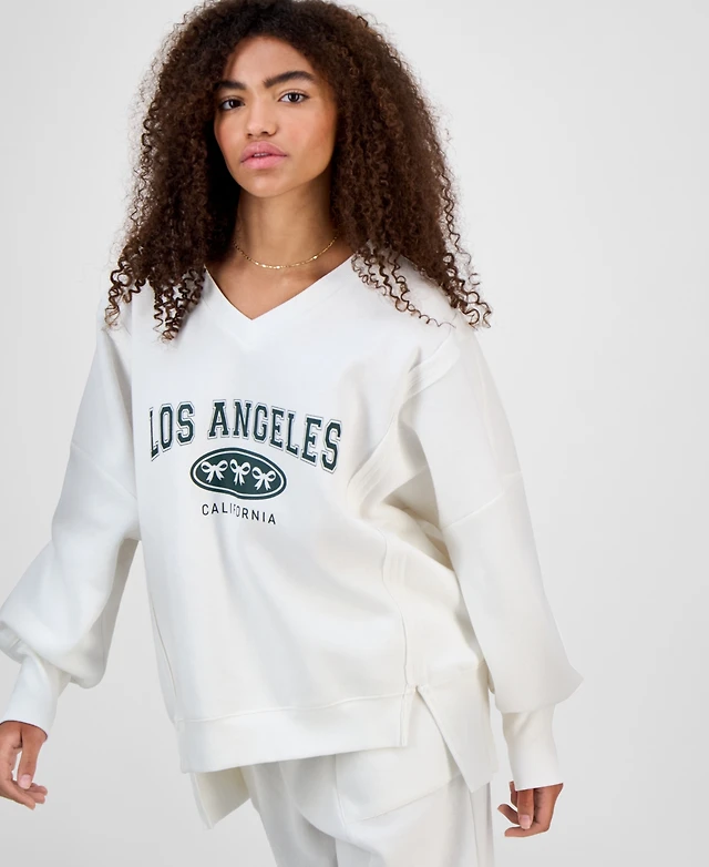 Planet Gold Juniors' Oversized Graphic-Print Sweatshirt