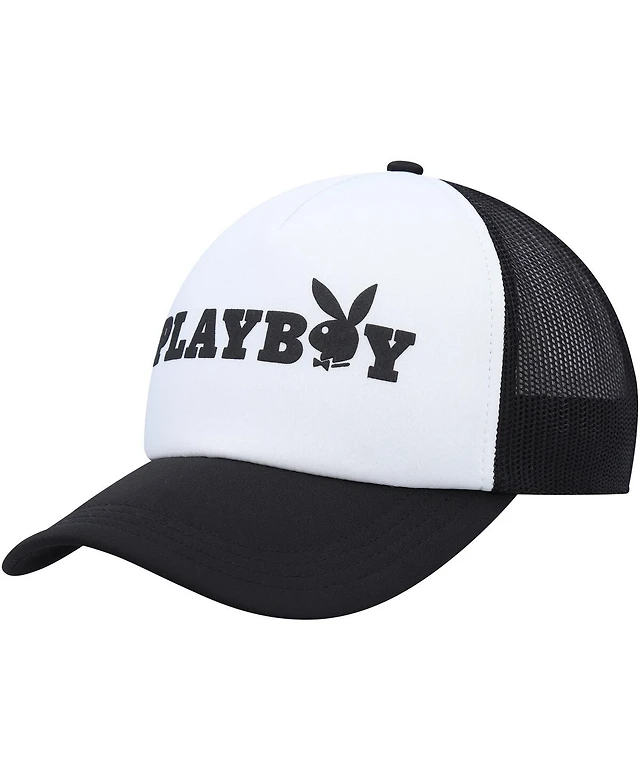 Men's Playboy White, Black Foam Trucker Snapback Hat