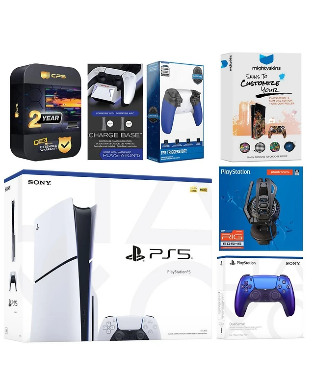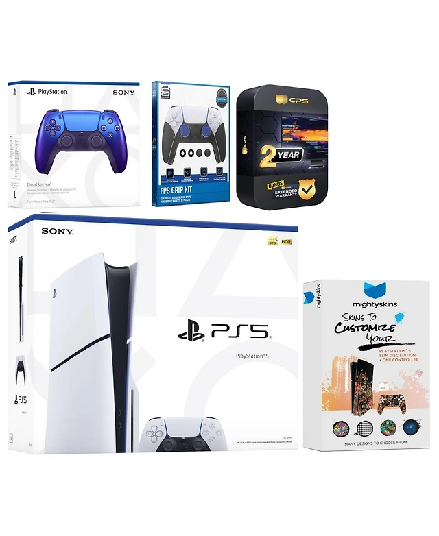Sony Playstation 5 Slim Disc with Extra Controller, Plantronics Headset, Gamer Kit, Trigger Kit and MightySkins Decal Voucher + 1 Year Cps Extended Wa