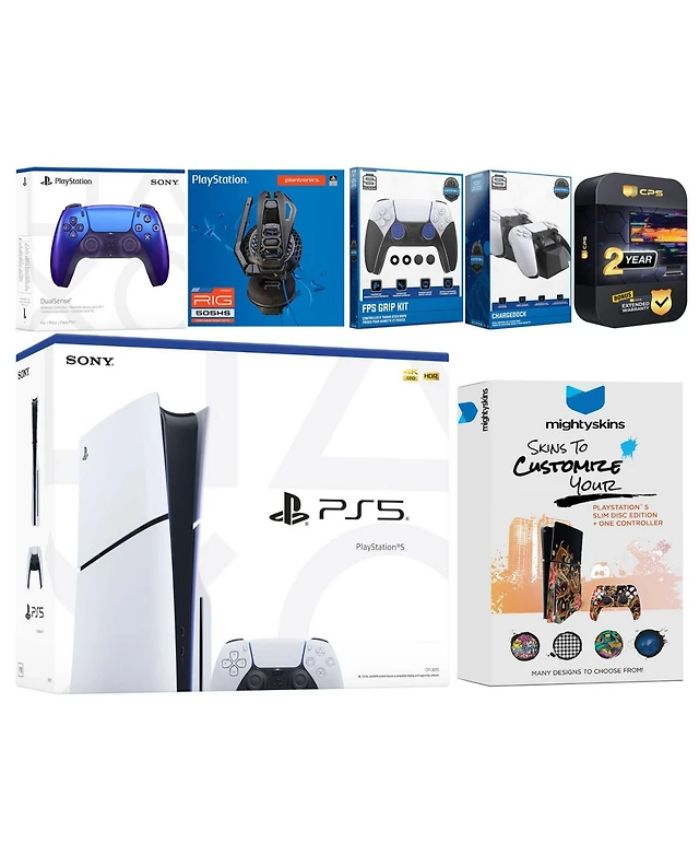 Sony Playstation 5 Slim Digital with Extra Edge Controller, Plantronics Headset, Fps Grip Kit, Charge Dock and MightySkins Decal Voucher + 1 Year Cps